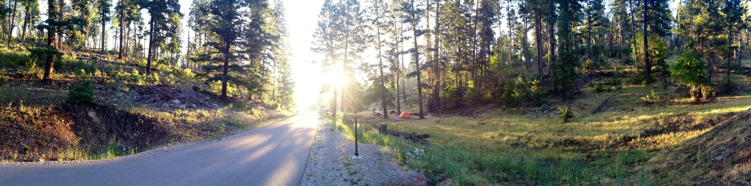 We camped in a valley in the Lincoln National Forest. No water, no electricity, no cell phone signal.