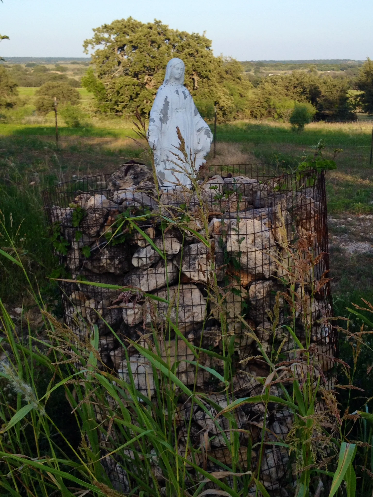 My dad tends the buildings that remain as they were, like monuments without visitors. We walk past the places our relatives died. The deer, the rolling hills and waving grasses, the oaks and cacti and yucca--they tend themselves under the great blue sky.